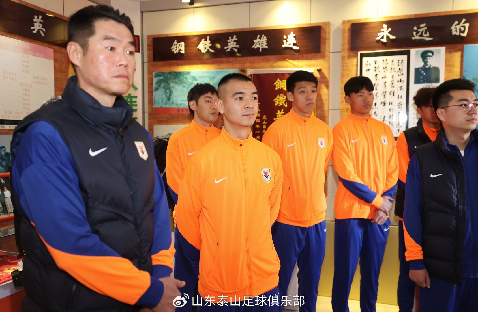 活動(dòng)當(dāng)天上午,山東泰山足球俱樂部總經(jīng)理周培建、副總經(jīng)理宿茂臻、球員代表劉彬彬、吳興涵、劉世博,以及泰山B隊(duì)和魯能足校U16的球員們前往紅色朱村參觀學(xué)習(xí),接受紅色教育。現(xiàn)場還來了許多熱情的球迷,他們與俱樂部成員一同重溫革命歷史,共同感受沂蒙精神中那種對信仰的忠誠、對責(zé)任的擔(dān)當(dāng)以及無私奉獻(xiàn)的偉大力量。球迷們的熱情參與讓此次活動(dòng)更加充滿意義,也讓大家更加堅(jiān)定了傳承紅色基因、踐行社會責(zé)任的信念。
