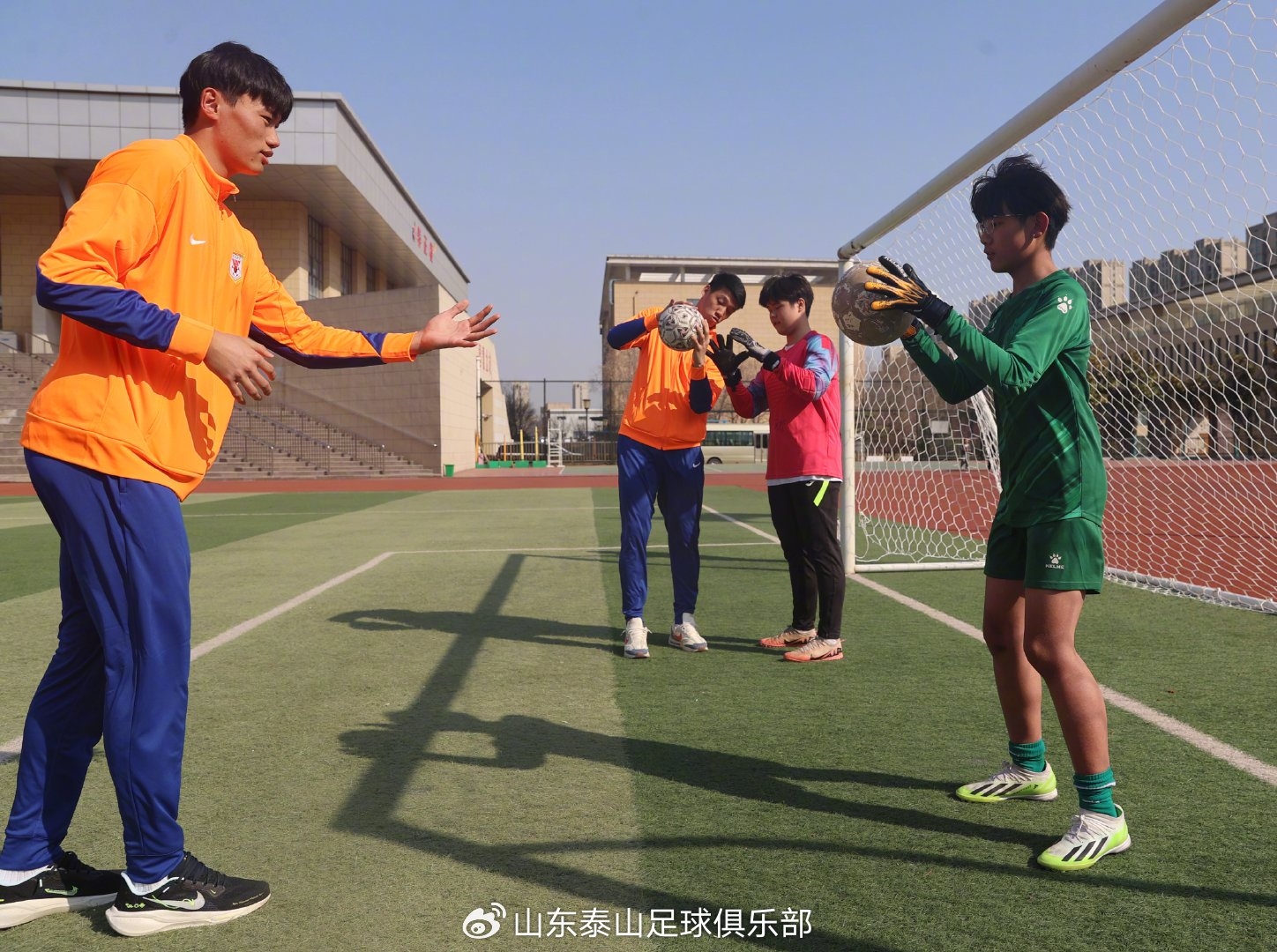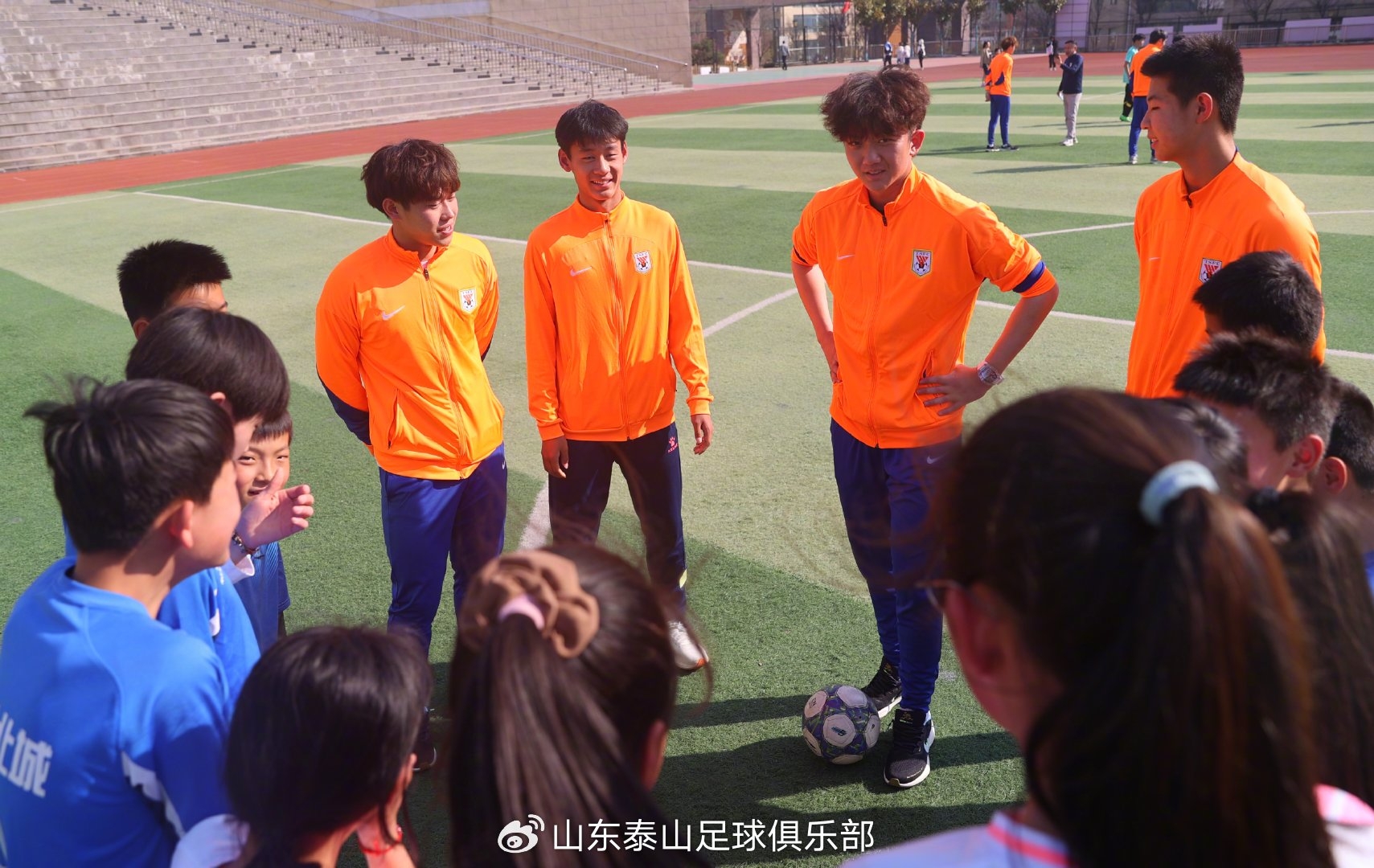 活動(dòng)中,山東泰山足球俱樂部向?qū)W校及臨沭縣體育部門捐贈(zèng)了簽名足球、簽名球衣、守門員手套及專業(yè)足球訓(xùn)練裝備等物資,山東省體育記者協(xié)會體育記者足球聯(lián)隊(duì)也向?qū)W校捐贈(zèng)了學(xué)習(xí)用品和足球裝備。隨后,俱樂部球員們給學(xué)生們進(jìn)行了足球基礎(chǔ)技能培訓(xùn),并組織了趣味足球游戲,讓孩子們在歡聲笑語中感受足球的魅力。