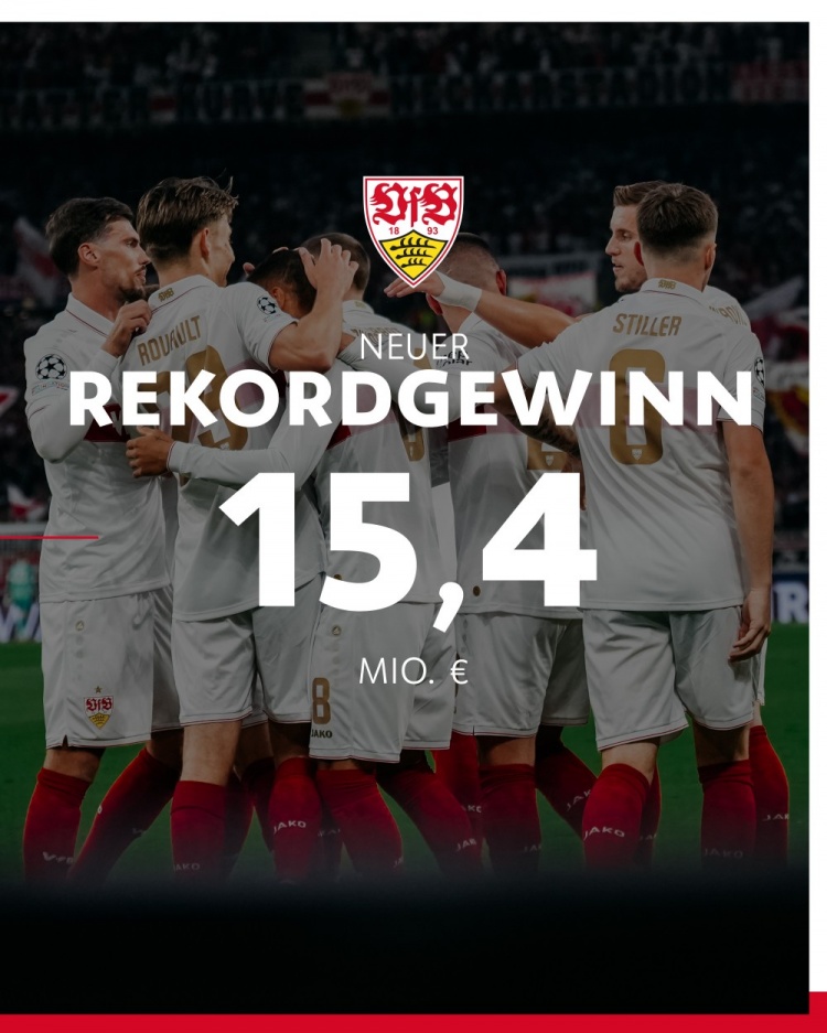 斯圖加特官推寫道:“斯圖加特1893股份公司在2024自然年的總收入為2.998億歐元,創(chuàng)下了俱樂部的歷史新高。同樣重要的是,利潤達(dá)到了1540萬歐元,也創(chuàng)下了歷史新高?!?/p>