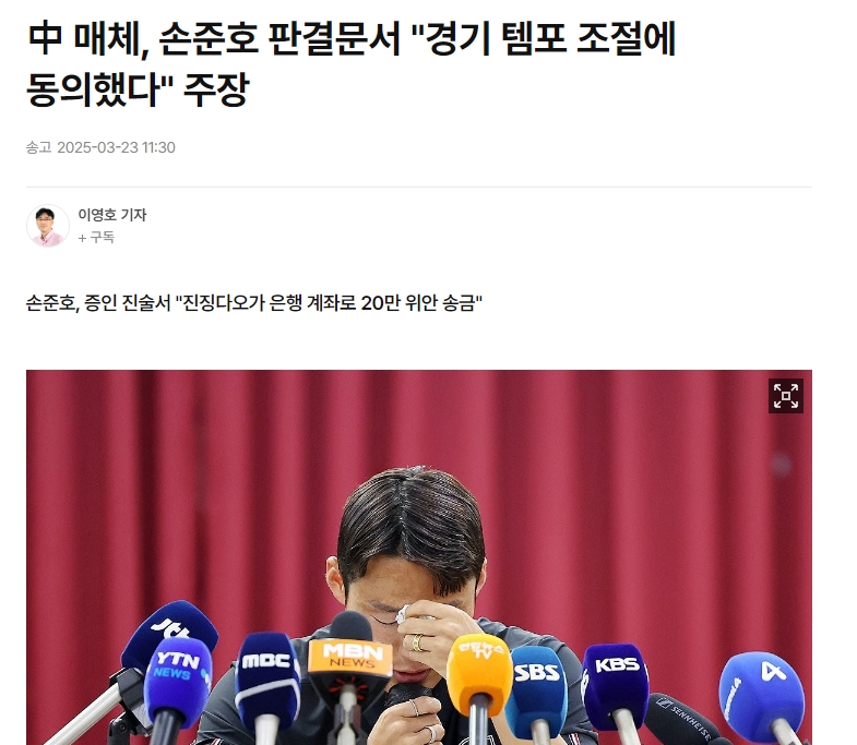 韓媒標(biāo)題:“我比平時(shí)更放松心態(tài)比賽”孫準(zhǔn)浩否認(rèn)操縱比賽,但在中國(guó)網(wǎng)絡(luò)上泄露的判決書中承認(rèn)了這一罪行。