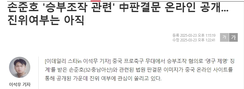 edaily標(biāo)題:孫準(zhǔn)浩假球案判決書在網(wǎng)上發(fā)布,真實(shí)性尚不清楚。