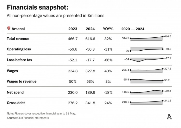 也正因?yàn)槿绱?,在阿森納已經(jīng)連續(xù)六年出現(xiàn)虧損的情況下,PSR已然成為槍手所有者和球迷共同關(guān)心的話題。但說(shuō)實(shí)話,大家也不需要過(guò)多擔(dān)心——盡管他們不能像其他球隊(duì)那樣申報(bào)高額虧損。