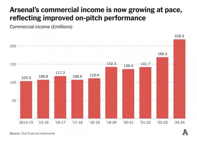 至于商業(yè)收入的激增,則是阿森納近年來(lái)最令人欣喜的部分。