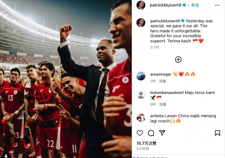 今日克魯伊維特更新社媒,曬出了全隊圍在一起慶祝勝利的照片,并配文寫道:“昨天是特別的一天,我們在場上傾盡所有,球迷們的加油助威讓這晚更加難忘。謝謝你們令人振奮的支持,感謝(印尼語)。”