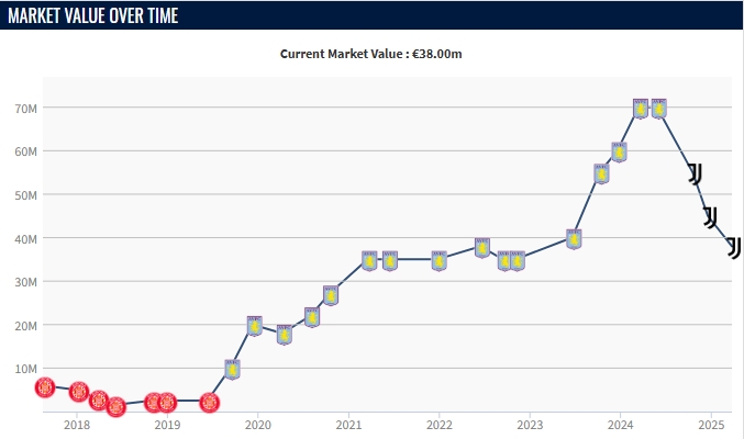 03月26日訊 昨日德轉(zhuǎn)更新意甲球員身價(jià),去年夏窗轉(zhuǎn)會(huì)至尤文的道格拉斯-路易斯身價(jià)再次下跌,僅剩3800萬歐,而他在去年從維拉轉(zhuǎn)會(huì)至尤文時(shí),身價(jià)還高達(dá)7000萬歐。