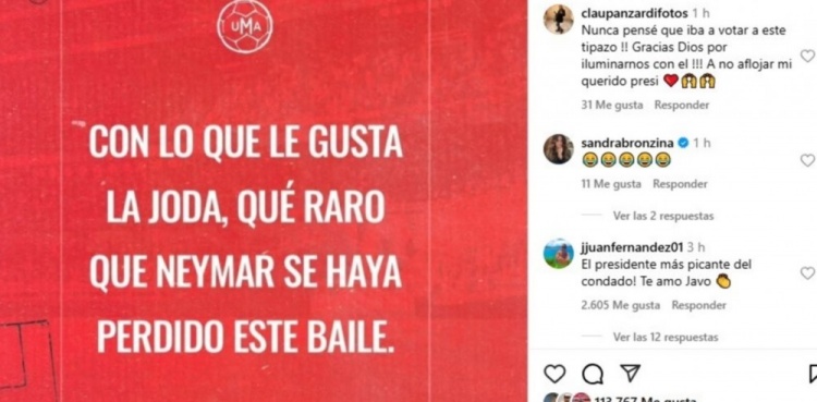 在INS上,米萊嘲諷了本場比賽缺陣的內(nèi)馬爾,他寫道:內(nèi)馬爾是如此熱愛聚會,他這次缺席讓人感到奇怪。