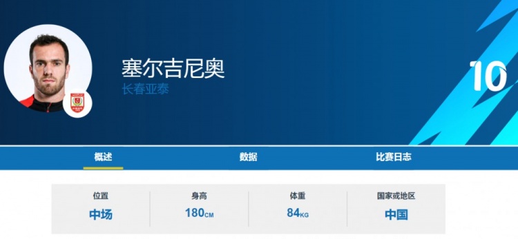 但在塞爾吉尼奧個人的資料當(dāng)中,中足聯(lián)官網(wǎng)尚未及時更新,目前顯示的依然是他上賽季的資料。