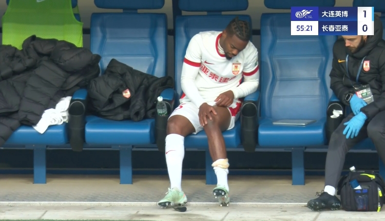 03月29日訊 大連英博vs長春亞泰第54分鐘,西普里安傷退,亞泰本場已經3人因傷被換下!