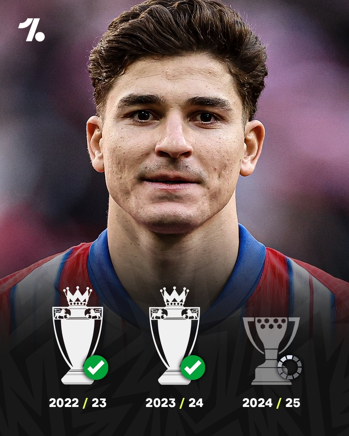 在本賽季之前,阿爾瓦雷斯已經(jīng)連續(xù)三個(gè)賽季斬獲聯(lián)賽冠軍。2021賽季,阿爾瓦雷斯隨河床奪得阿根廷職業(yè)聯(lián)賽冠軍,2022-23和2023-24賽季,阿爾瓦雷斯則隨曼城奪得兩座英超冠軍。