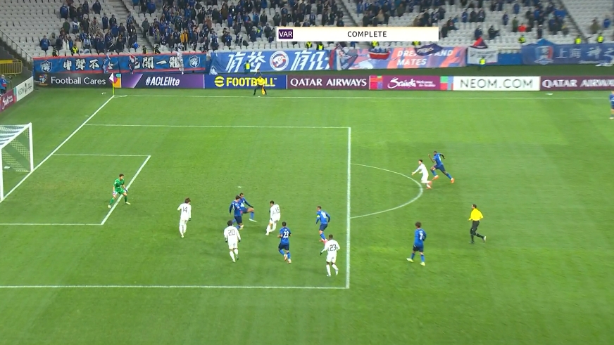 比賽第32分鐘,鮑亞雄后場(chǎng)出球被斷,禁區(qū)內(nèi)亂戰(zhàn)脅坂泰斗破門(mén),隨后VAR介入,主裁去場(chǎng)邊查看回放后示意越位在先,進(jìn)球無(wú)效,申花仍0-0川崎前鋒。