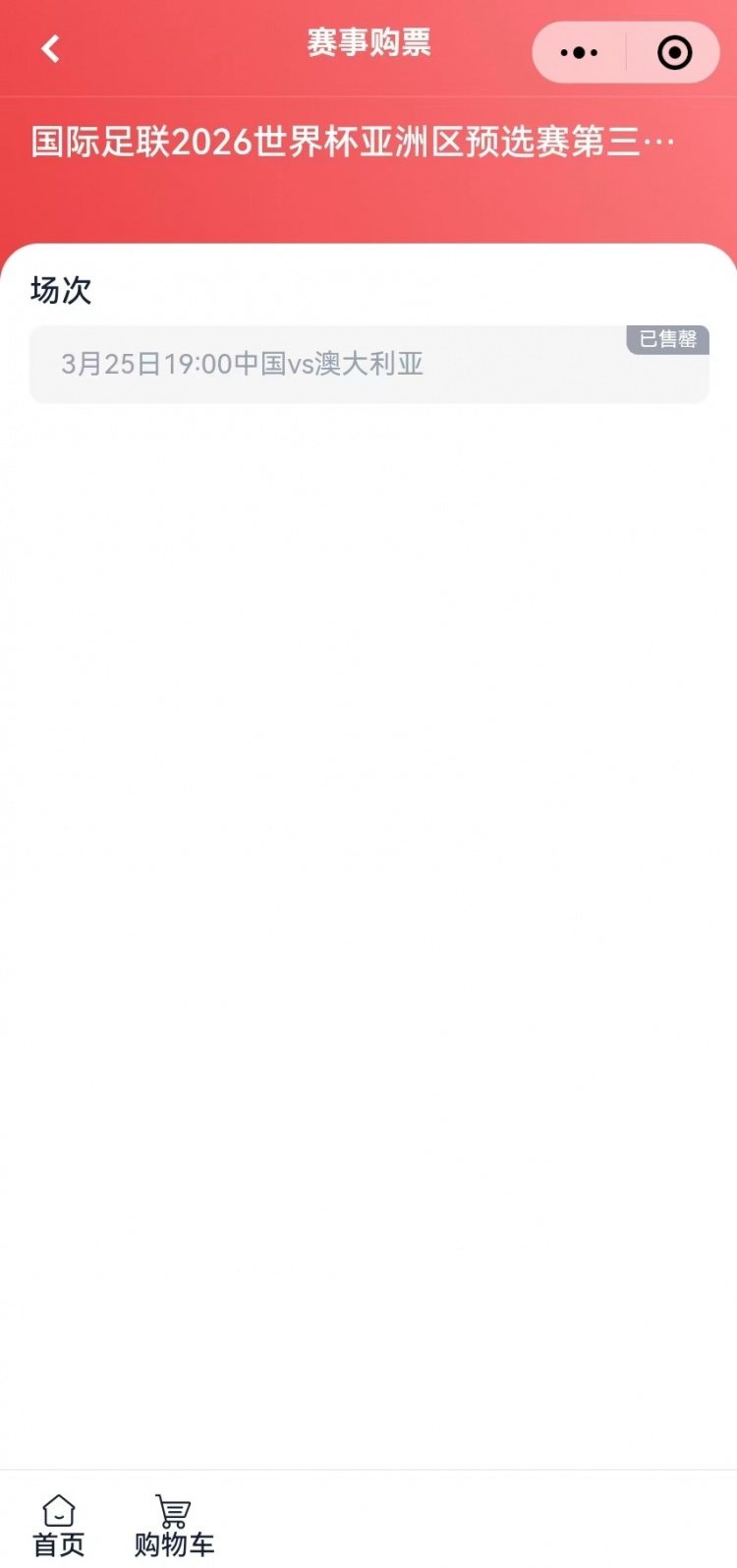 3月7日訊 國足將于3月25日于世預(yù)賽18強(qiáng)戰(zhàn)主場迎戰(zhàn)澳大利亞,本場球票在今日17點開售,多個平臺迅速售罄。