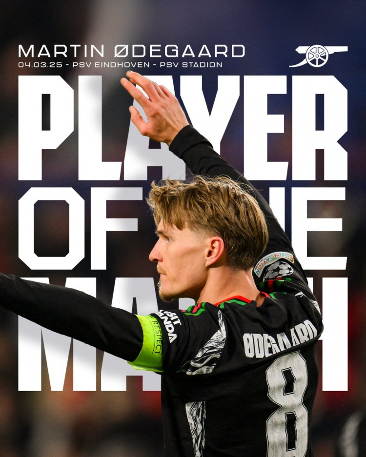 3月5日訊 北京時(shí)間今天凌晨進(jìn)行的歐冠1/8決賽首回合,槍手客場(chǎng)7-1擊敗埃因霍溫,厄德高此役貢獻(xiàn)2射1傳。賽后,他獲得了球迷最多的投票,當(dāng)選此役隊(duì)內(nèi)最佳球員。
