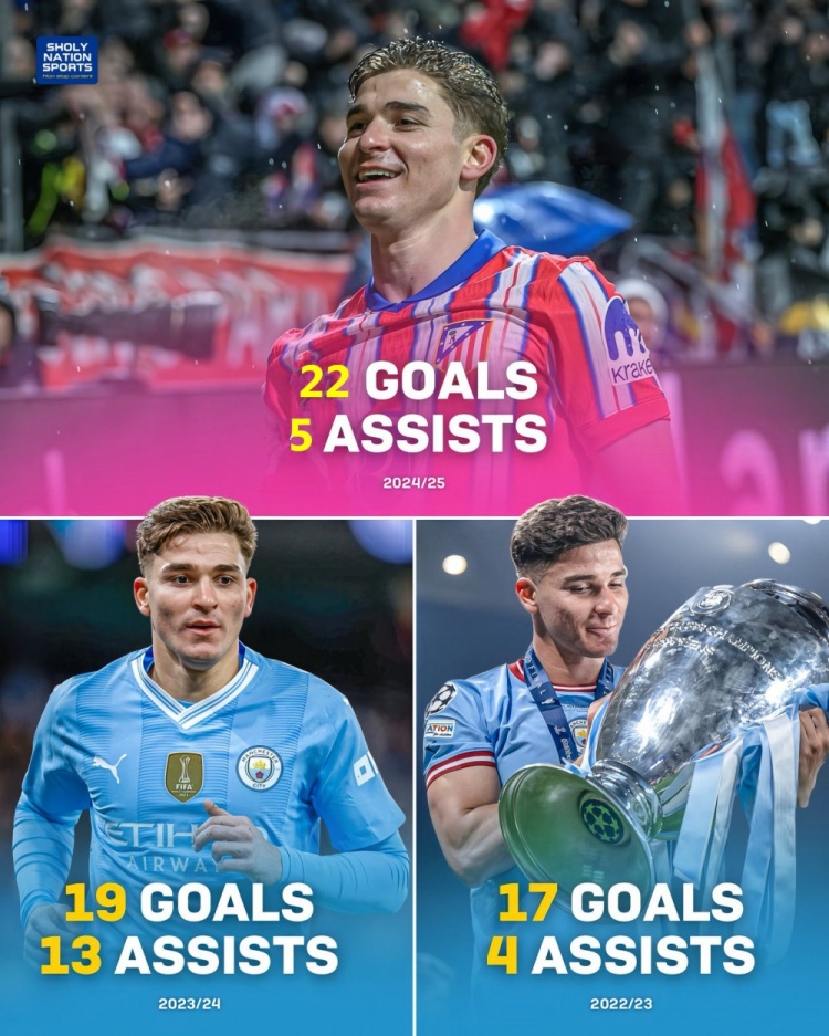 2024年10月7日,馬德里競(jìng)技做客挑戰(zhàn)皇家社會(huì),阿爾瓦雷斯開(kāi)場(chǎng)50秒便完成閃擊破門(mén),此役成為其西甲生涯的分水嶺。在賽季初的10場(chǎng)比賽中,阿爾瓦雷斯只有2球入賬,鋪天蓋地的“水貨”罵名幾乎淹沒(méi)了他的社交媒體賬號(hào)。以造訪阿諾埃塔為起點(diǎn),小蜘蛛開(kāi)啟了一輪31場(chǎng)20球的收割之旅,馬競(jìng)以一波12連勝進(jìn)入西甲爭(zhēng)冠集團(tuán),老東家曼城卻在同時(shí)期輸?shù)?4場(chǎng)比賽,昔日的冠軍圣體蛻進(jìn)階為玄學(xué)大師。