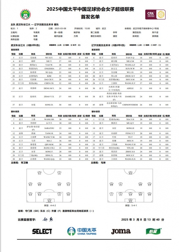 今天下午15:00,武漢車谷江大將在首輪女超聯(lián)賽主場(chǎng)迎戰(zhàn)遼寧沈陽沈北禾豐。身披武漢7號(hào)球衣的王霜,進(jìn)入球隊(duì)比賽名單,但并未進(jìn)入首發(fā)。本場(chǎng)比賽,王霜大概率將迎來回歸女超聯(lián)賽的首秀。