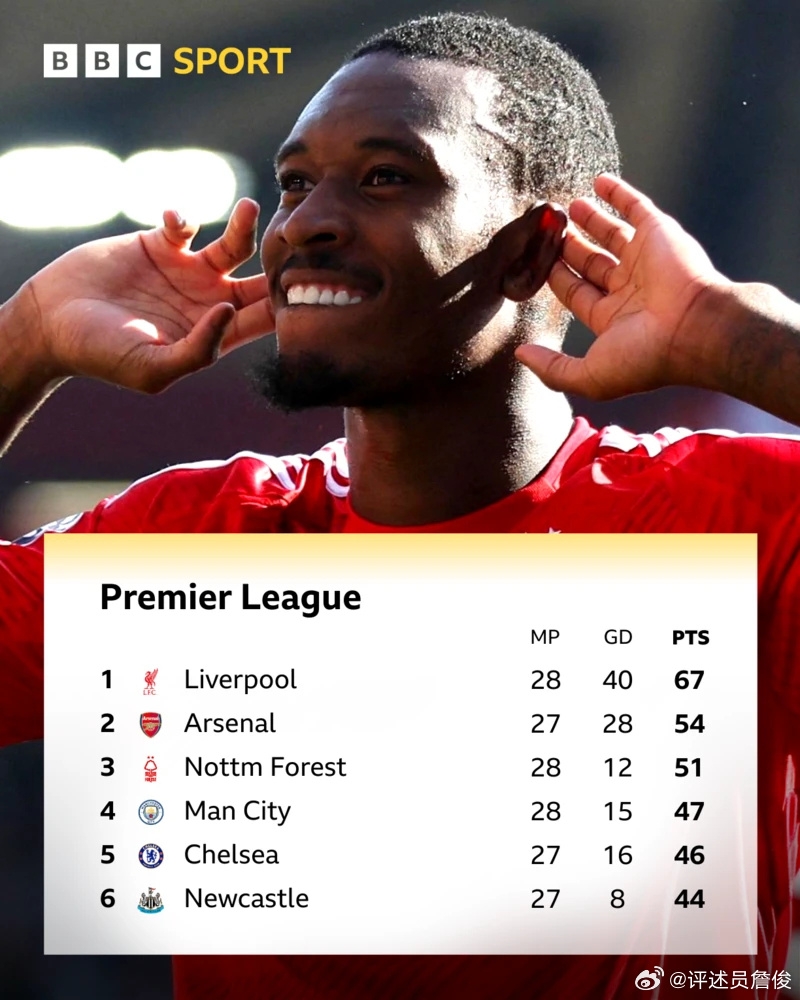 - 天差地別!森林上賽季英超最終落后曼城59分,本賽季目前領(lǐng)先4分