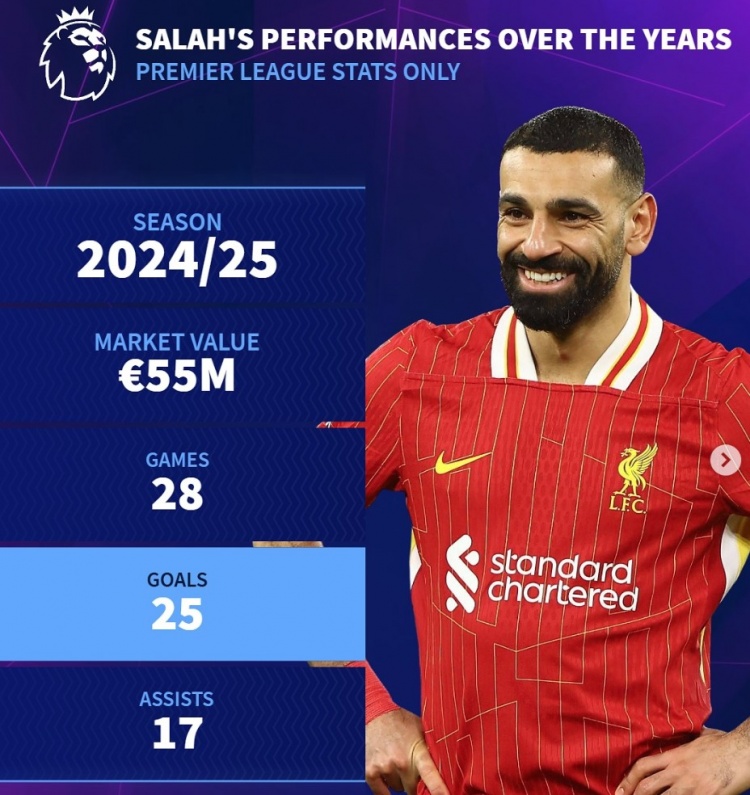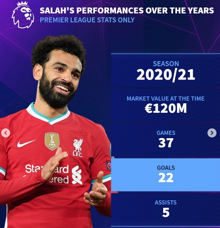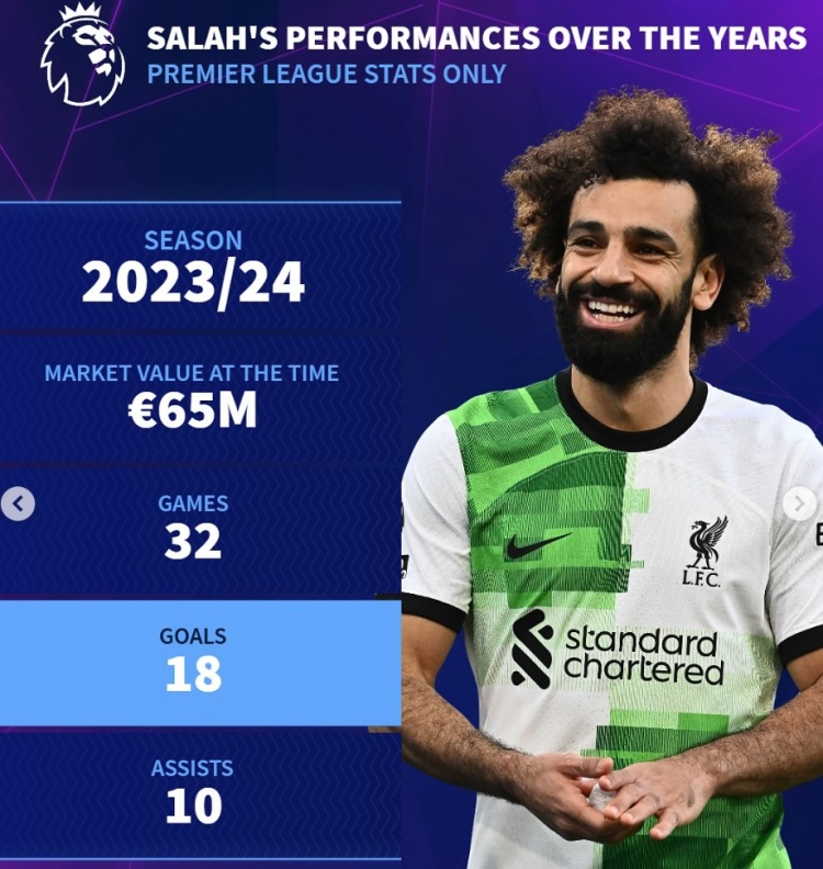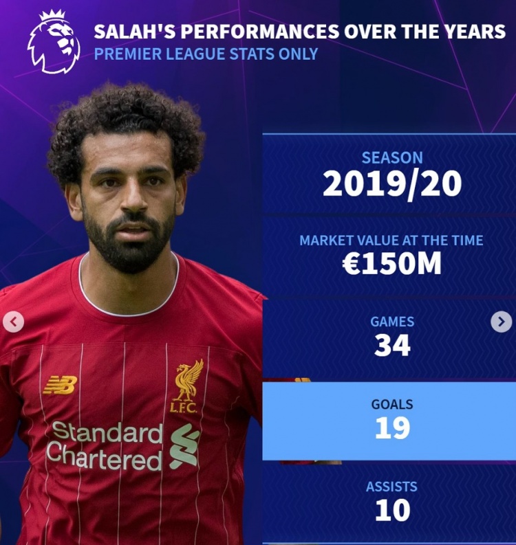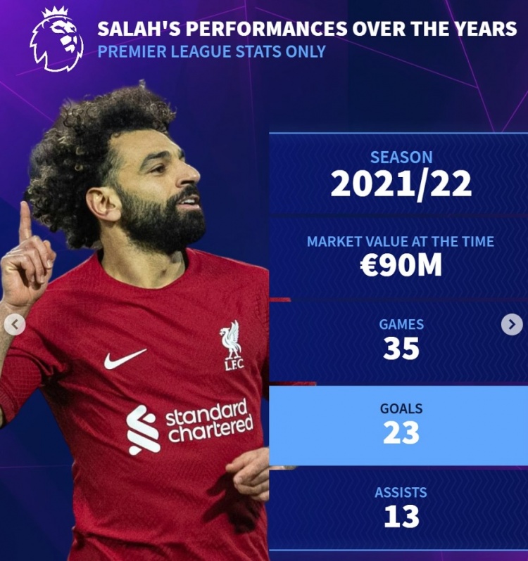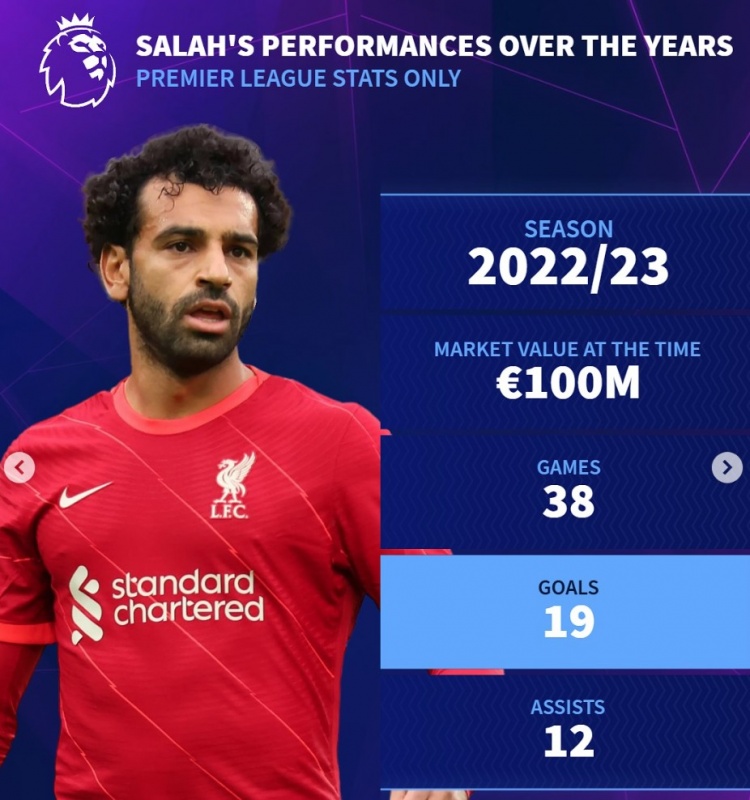 - 曇花不??!德轉(zhuǎn)列薩拉赫歷年英超數(shù)據(jù):身價最高1.5億歐元