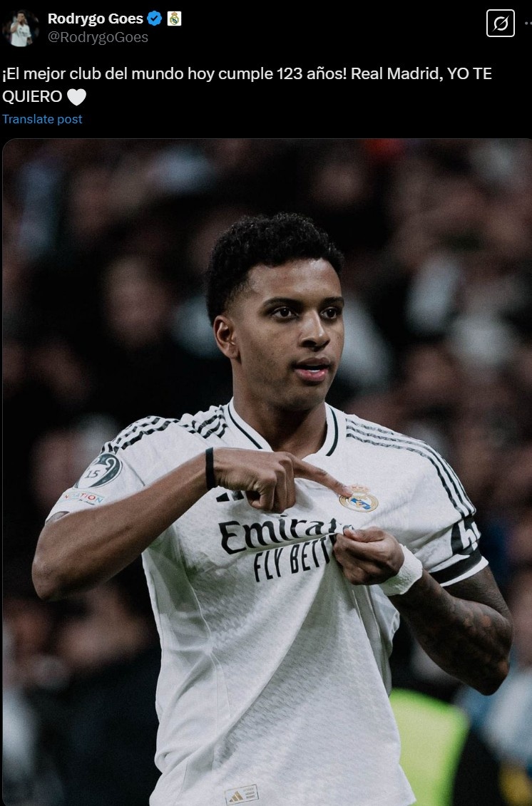 歐冠1/8決賽首回合皇馬2-1戰(zhàn)勝馬競,羅德里戈再次成為決定性人物。他以自己標志性的方式完成這一切,沒有浮夸的慶祝,沒有多余的動作,完美詮釋個人風格。但最引人注目的是進球后的表態(tài):在親吻皇馬隊徽并用手指向伯納烏草皮做出"留駐"手勢后,他宣告"我會留在這里"。