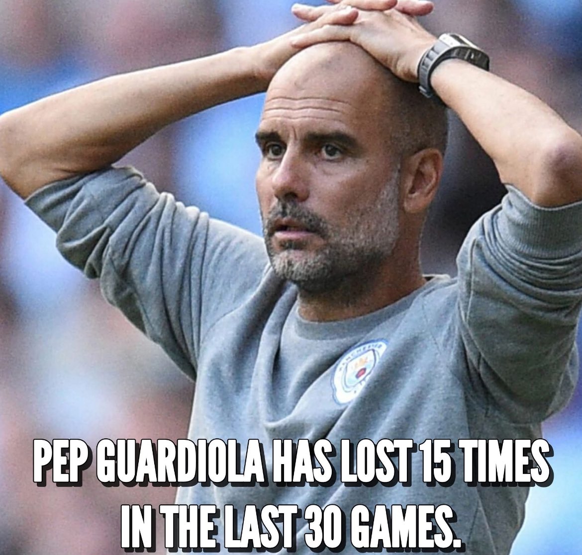 瓜迪奧拉最近30場比賽已經(jīng)輸了15場?