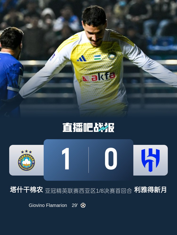 03月05日訊 亞冠精英聯(lián)賽西亞區(qū)1/8決賽首回合,利雅得新月0-1不敵塔什干棉農(nóng),客場告負。