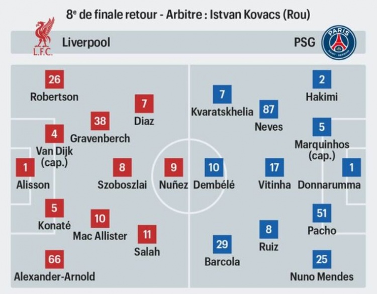 3月11日訊 北京時間明天凌晨,歐冠1/8決賽次回合,利物浦主場對陣巴黎。《巴黎人報》預測了本場比賽的兩隊首發(fā)陣容。