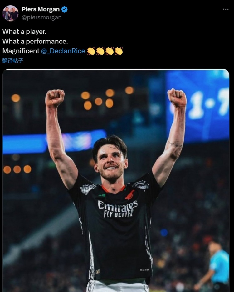 名嘴摩根也通過社媒稱贊道:“多么出色的球員,多么棒的表現(xiàn)!棒極了@賴斯”