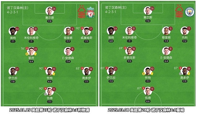 憑借赫德森-奧多伊的精彩進(jìn)球,諾丁漢森林主場擊敗曼城,從直接競爭對手那里奪得了價(jià)值連城的“六分”,在Big6球隊(duì)身上拿分已經(jīng)成為這支球隊(duì)的常規(guī)操作。聯(lián)賽上半程,諾丁漢森林主場送給利物浦賽季唯一敗仗,客場戰(zhàn)平切爾西,從狀態(tài)不佳的曼聯(lián)和熱刺那里賺足6分,踢到第17輪時(shí)所取得積分便已經(jīng)超過了上賽季的分?jǐn)?shù)(32分)。
