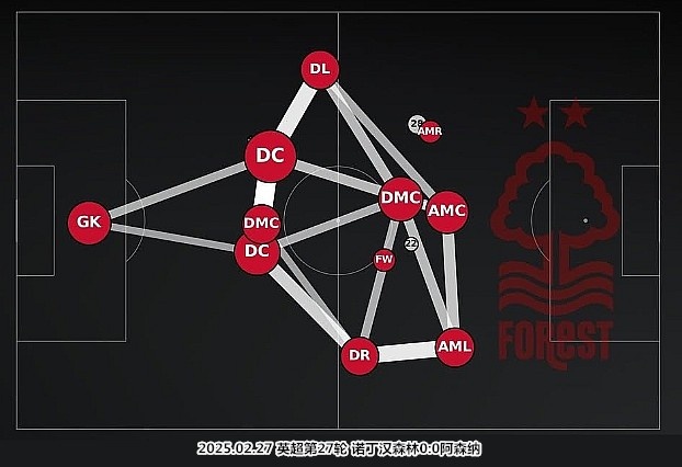 穆里略和米倫科維奇配合默契,埃蘭加和奧多伊可以深度退守保護(hù)邊后衛(wèi),克里斯-伍德總是在不停干擾對手的傳遞,吉布斯-懷特甚至能夠來到中衛(wèi)身前扮演清道夫……諾丁漢森林擁有正面防守能力出眾的中衛(wèi)組合,他們身邊聚集了多名柔韌性出眾、腳下纏斗能力強(qiáng)且愿意防守的攻擊手。努諾-桑托的球隊(duì)防守時(shí)頗具拉丁風(fēng)味,依靠錯(cuò)落有致的三線結(jié)構(gòu)堵塞禁區(qū)空間,就是他們的招牌動(dòng)作。