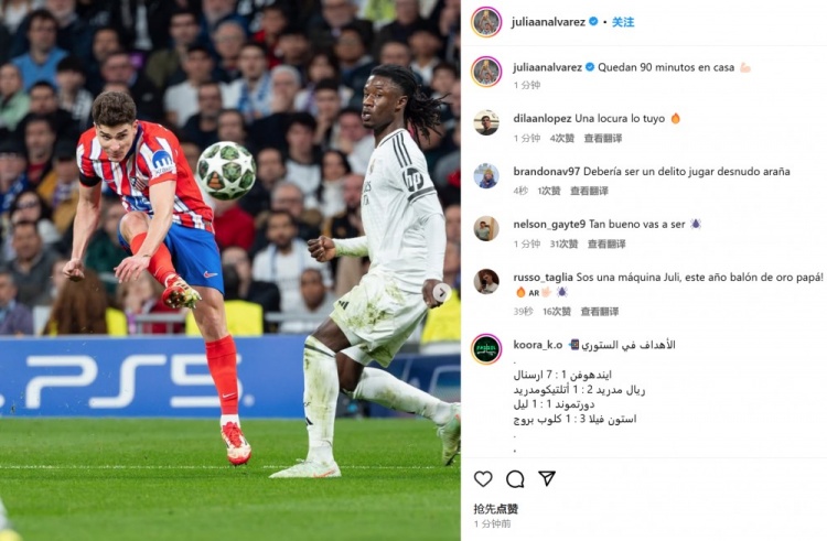 阿爾瓦雷斯也在賽后通過社媒曬出自己的進(jìn)球瞬間,并配文:“回到主場之后還有90分鐘。”