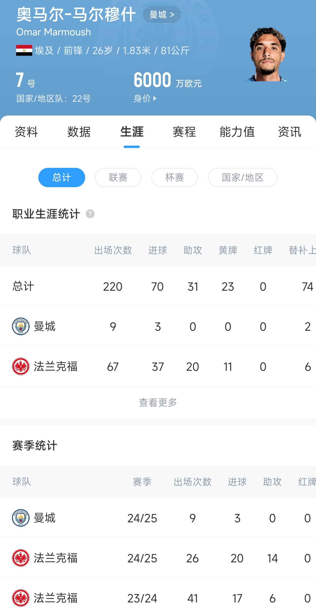 馬爾穆什加盟曼城后數(shù)據(jù):9場(chǎng)3球0助