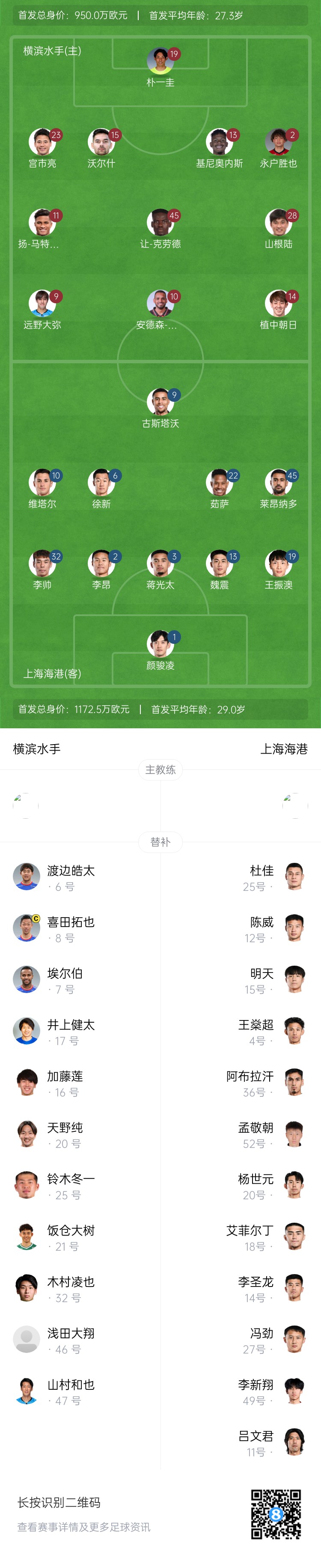- 海港vs橫濱首發(fā):4外援PK5外援!茹薩解禁,萊昂納多、魏震先發(fā)