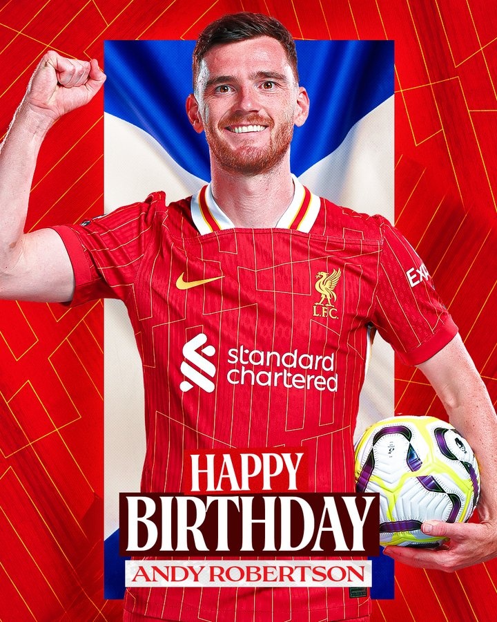- 羅伯遜迎來31歲生日,利物浦官推曬海報(bào)送祝福