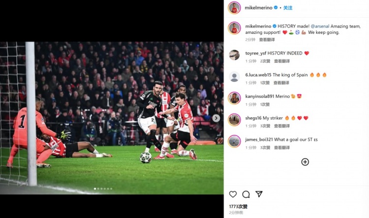 他也在賽后通過社媒曬出自己的進球瞬間,并配文:“7造歷史!@阿森納,難以置信的球隊,難以置信的支持!??????我們繼續(xù)努力!”