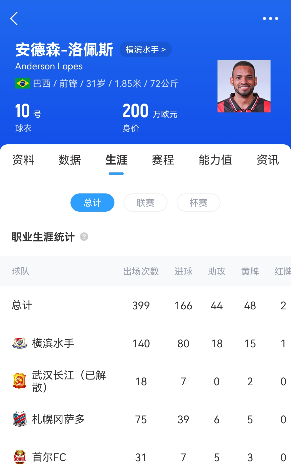 - 中超解散隊(duì)舊將...橫濱隊(duì)長(zhǎng)洛佩斯打入海港3球 曾代表武漢18場(chǎng)7球