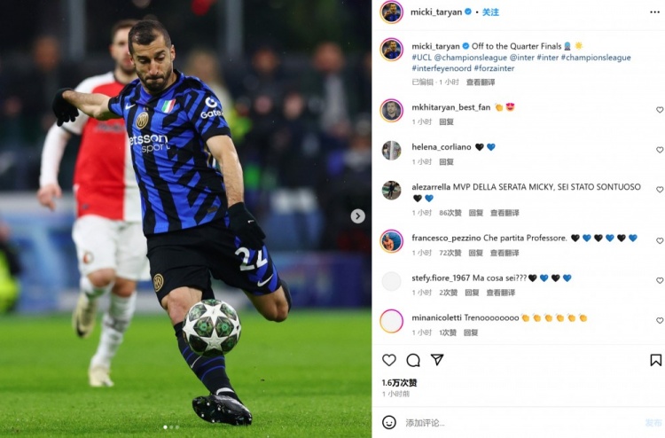 - 將戰(zhàn)拜仁!勞塔羅&姆希塔良&圖拉姆社媒曬照慶祝晉級(jí)八強(qiáng)