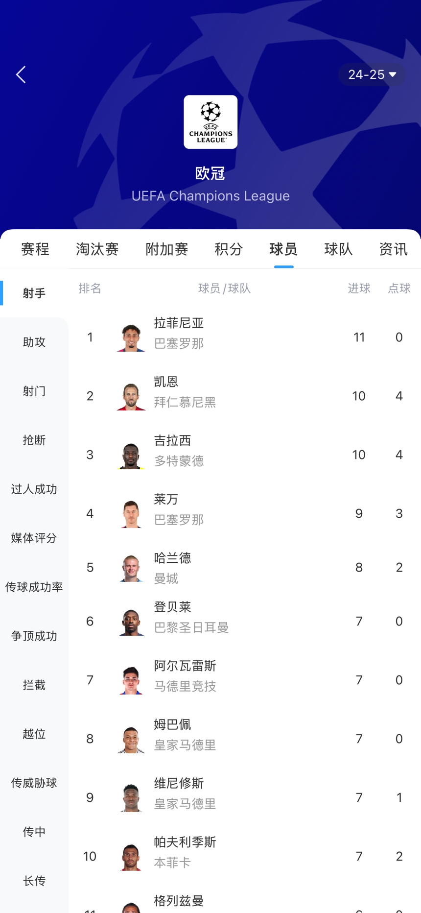 本賽季歐冠,拉菲尼亞出戰(zhàn)10場(chǎng)貢獻(xiàn)11球5助攻。