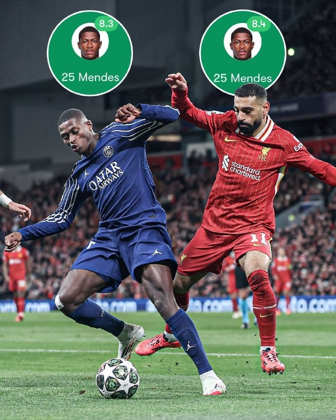 面對薩拉赫和路易斯-迪亞斯,奧斯曼-登貝萊&巴爾科拉強勢搶鏡,維蒂尼亞領銜的巴黎中場在和“邁巴赫”組合的對抗中同樣不落下風。本場比賽,維蒂尼亞以93%的傳球成功率刷出111次傳球,成為了莫塔之后又一位在歐冠淘汰賽兩回合較量中均完成傳球次數破百的巴黎球員。另一位葡萄牙球員若昂-內維斯的傳球成功率同樣超過90%,法比安-魯伊斯在90分鐘的出場時間內贏得6次對抗和4次成功搶斷。