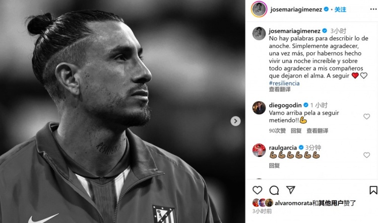 3月13日訊 在本輪歐冠,馬競在點(diǎn)球大戰(zhàn)不敵皇馬,無緣八強(qiáng)。馬競后衛(wèi)吉梅內(nèi)斯更新社媒感慨比賽。