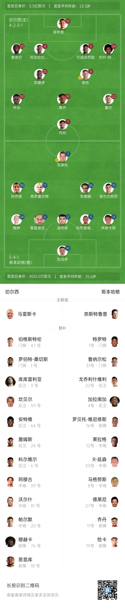 - 切爾西vs哥本哈根首發(fā):桑喬、內(nèi)托、恩佐出戰(zhàn),帕爾默替補(bǔ)