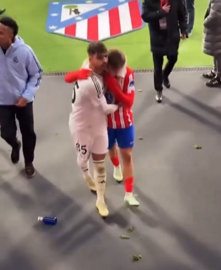這時候,有鏡頭拍到了勞爾-阿森西奧與巴里奧斯相互擁抱退場,可見馬競中場在落敗后深受觸動,而皇馬后衛(wèi)則給他送上了安慰和鼓勵。