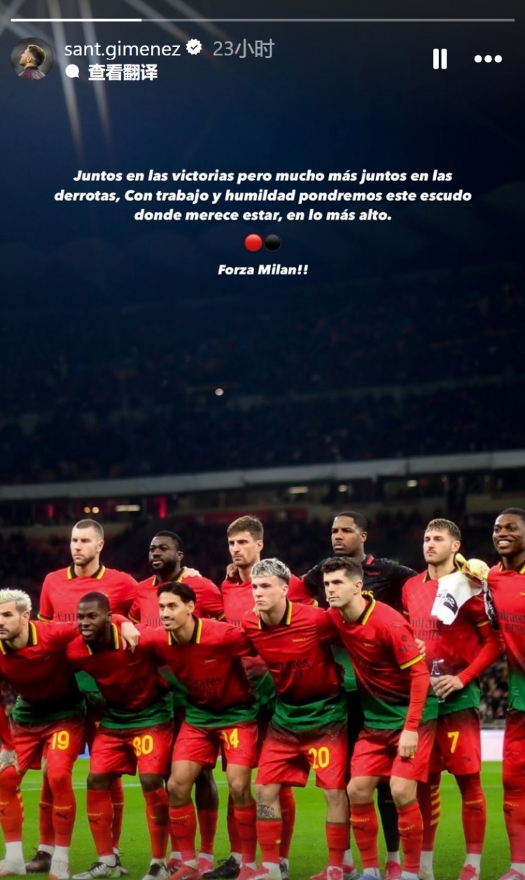 3月5日訊 意甲第27輪,米蘭1-2不敵拉齊奧,慘遭聯(lián)賽三連敗。賽后,S-希門尼斯更新社媒,為球隊(duì)鼓舞士氣。
