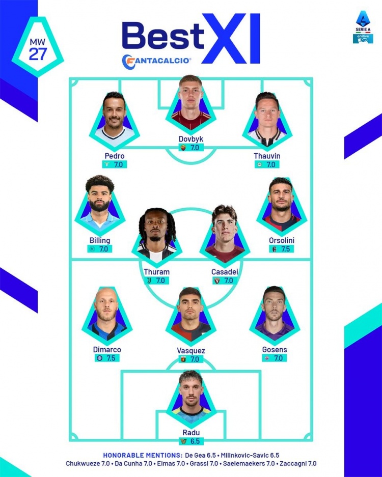 意甲第27輪官方最佳陣: