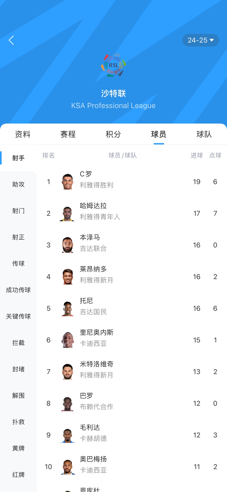 - 沙特聯(lián)射手榜:40歲C羅19球領(lǐng)跑,37歲本澤馬4輪球荒&16球排第三