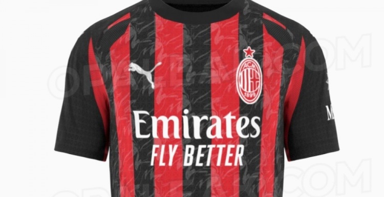 - 米蘭下賽季主場球衣泄露版:紅黑豎條紋點(diǎn)綴魔鬼圖案,紅白色隊(duì)徽