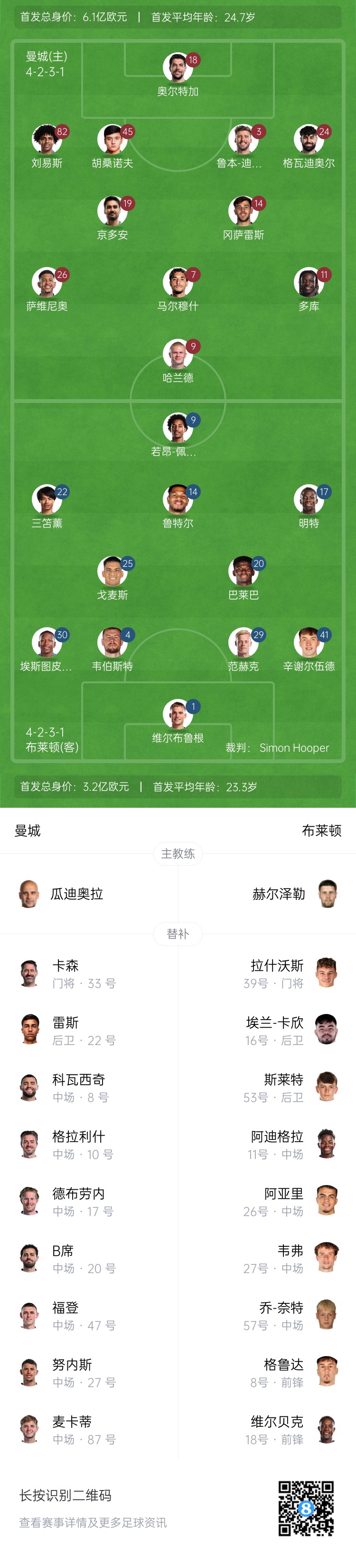 - 曼城vs布萊頓首發(fā):哈蘭德PK三笘薰,劉易斯、京多安出戰(zhàn)