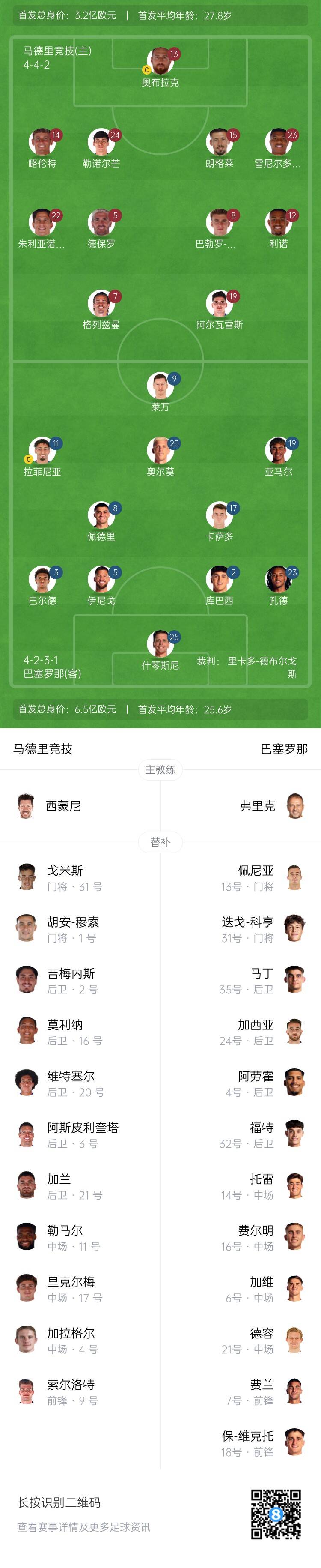 - 馬競vs巴薩首發(fā):小蜘蛛、格列茲曼先發(fā),萊萬、亞馬爾出戰(zhàn)