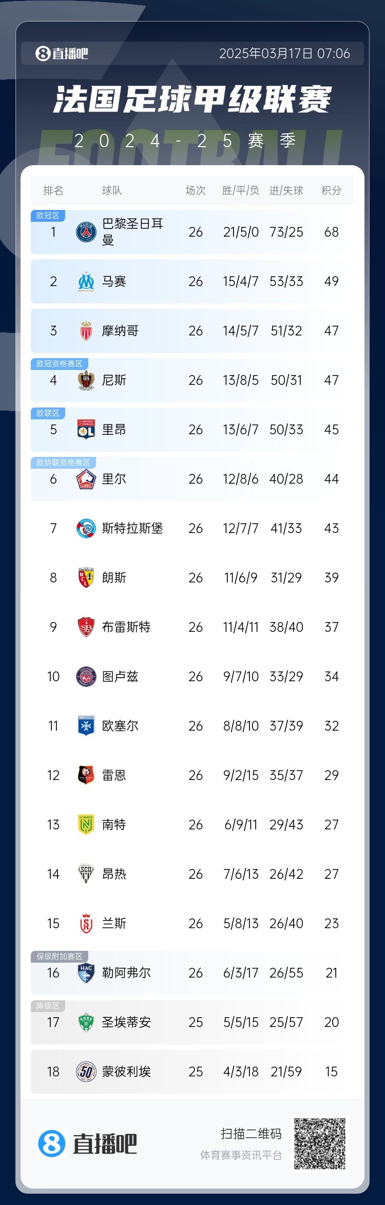 - 法甲榜首對(duì)決獲勝&領(lǐng)先19分,巴黎最快下一輪就能提前奪冠