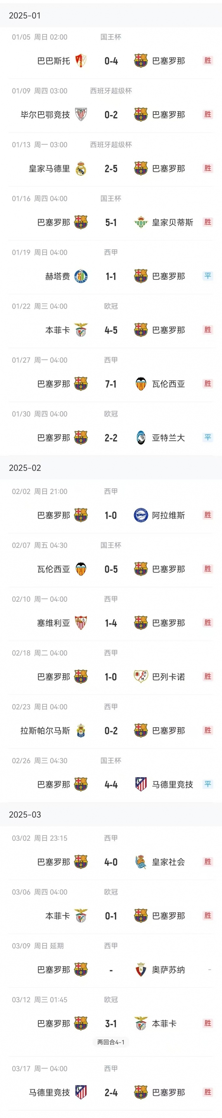 數(shù)據(jù)統(tǒng)計顯示,自去年年底2連敗之后,巴薩進(jìn)入2025年后各項賽事18場不敗。