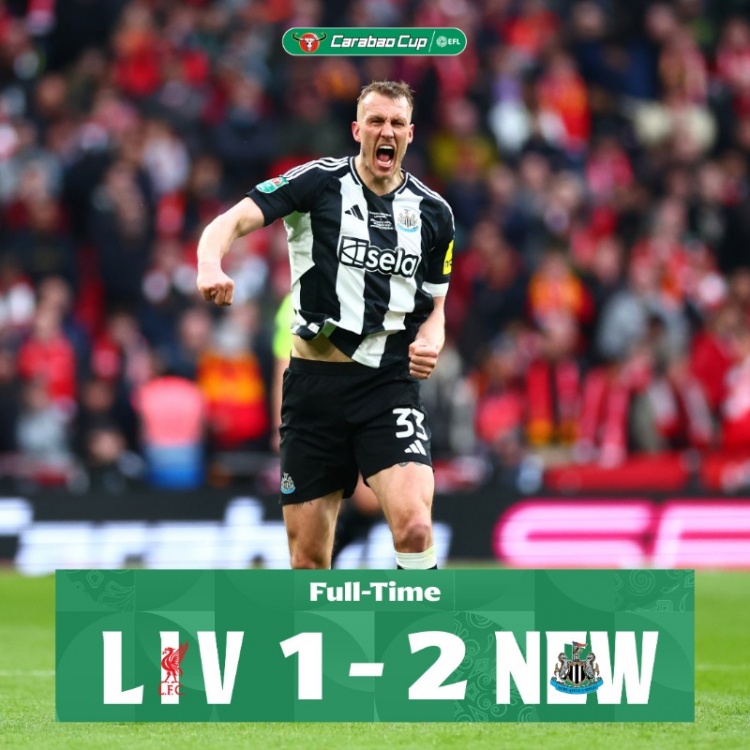 紐卡擊敗利物浦奪冠!紐卡隊(duì)史首奪聯(lián)賽杯冠軍!球隊(duì)同時(shí)也終結(jié)了國內(nèi)頂級(jí)賽事長(zhǎng)達(dá)70年的冠軍荒!