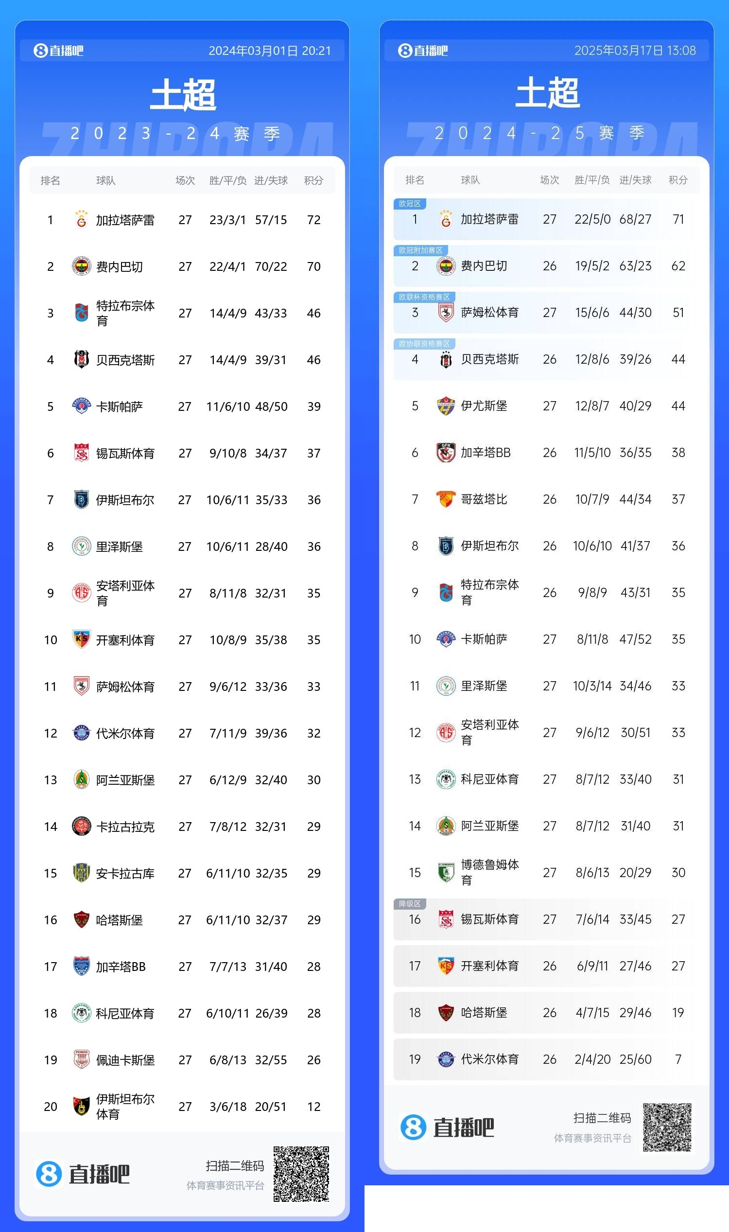 - 二人轉(zhuǎn)變獨(dú)角戲?去年土超前2差2分&大斷層領(lǐng)跑 今年費(fèi)內(nèi)巴切掉隊(duì)
