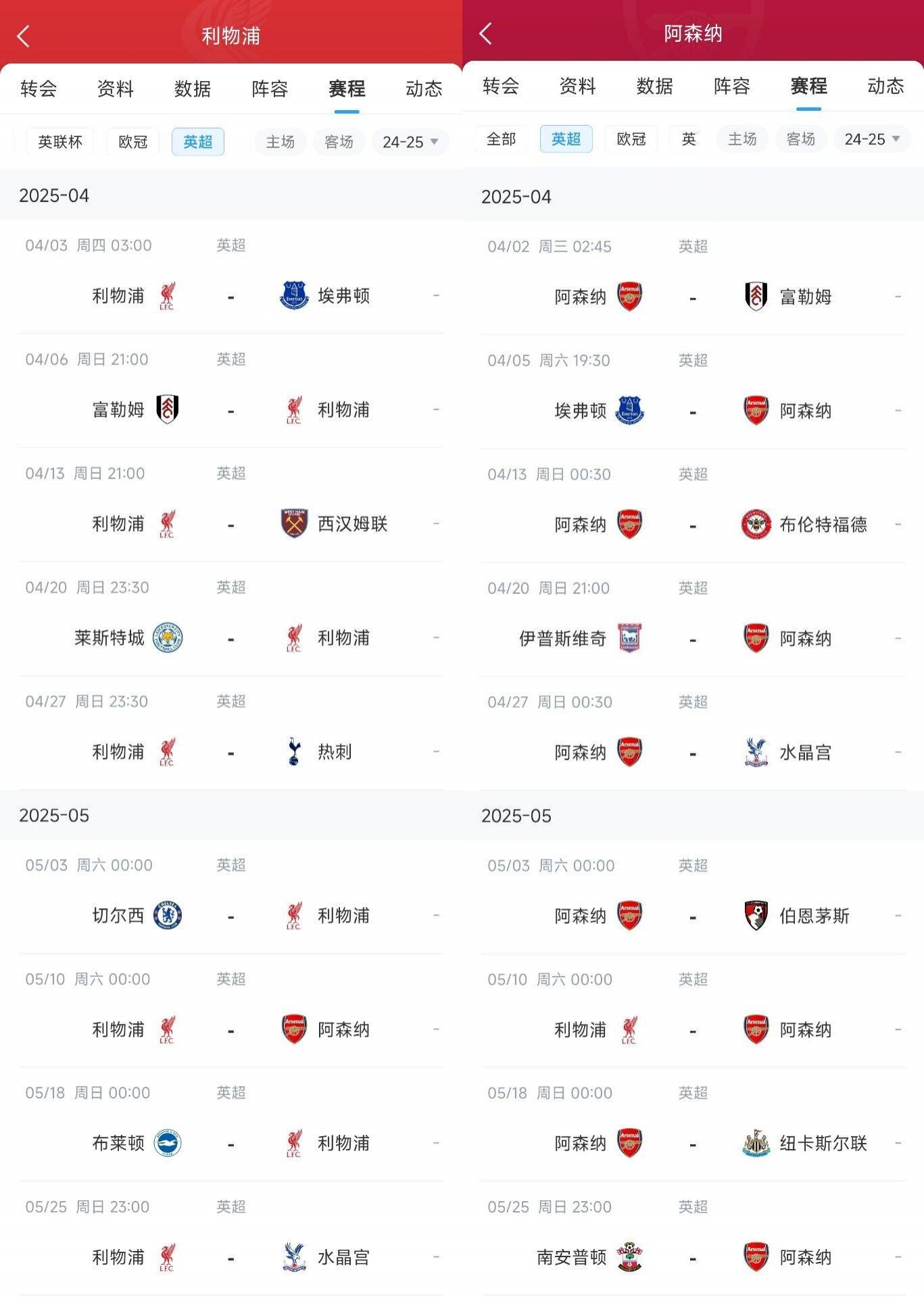 - 剩9輪差12分!利物浦阿森納賽程對(duì)比:第36輪交鋒,紅軍賽程略難
